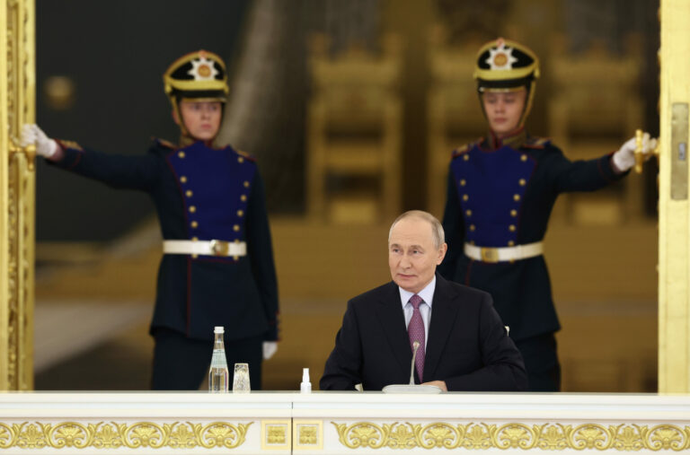 Ruský prezident Vladimir Putin počas zasadnutia prezidentskej rady pre strategický rozvoj a národné projekty v Kremli. Foto: Vladimir Astapkovich, Sputnik, Kremlin Pool Photo via AP