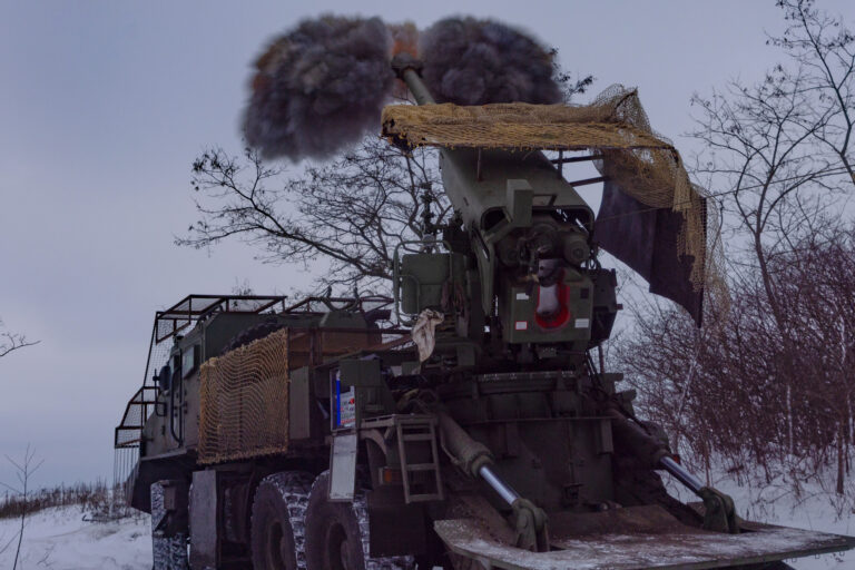 Ukrajinskí vojaci 48. delostreleckej brigády strieľajú zo samohybnej húfnice 2s22 Bohdana na ruské pozície na frontovej línii v Charkovskej oblasti na Ukrajine vo štvrtok 1. januára 2026. Foto: SITA/AP