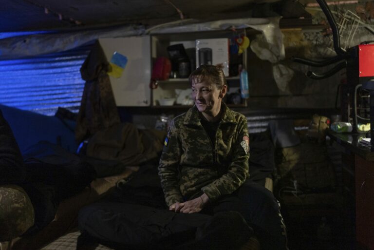 Ukrajinská vojačka z brigády Chartia, známa pod názvom „Granata“, odpočíva v prestávke medzi prácou na svojich pozíciách v Charkovskej oblasti na Ukrajine v stredu 12. marca 2025. Foto: SITA/AP