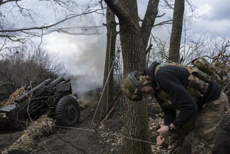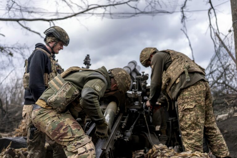 Ukrajinskí vojaci strieľajú z húfnice M777 na ruské pozície na frontovej línii pri Donecku, Ukrajina, pondelok 3. marca 2025. Foto: SITA/AP