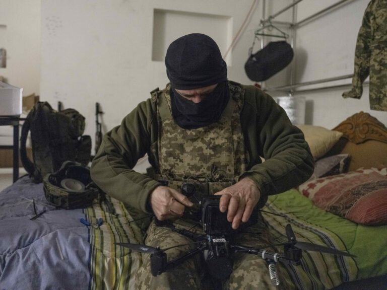 Na snímke, ktorú poskytla tlačová služba 93. ukrajinskej samostatnej mechanizovanej brigády Cholodnyj Jar, ukrajinský vojak pripravuje bezpilotné lietadlá v kryte v Pokrovsku, mieste ťažkých bojov s ruskými jednotkami v Doneckej oblasti na Ukrajine v nedeľu 9. marca 2025. Foto: Iryna Rybakova/Ukraine's 93rd Mechanized Brigade via AP