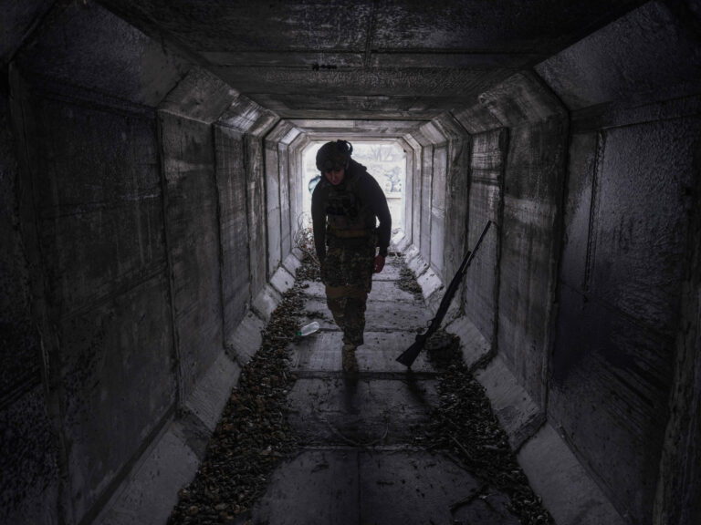 Na snímke poskytnutej tlačovou službou 93. ukrajinskej samostatnej mechanizovanej brigády Cholodnyj Jar vojak prechádza tunelom v Pokrovsku, mieste ťažkých bojov s ruskými jednotkami, v Doneckej oblasti na Ukrajine vo štvrtok 13. marca 2025. Foto: Iryna Rybakova/Ukraine's 93rd Mechanized Brigade via AP