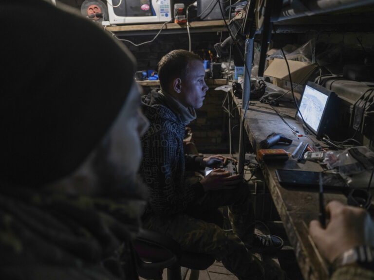 Na snímke poskytnutej tlačovou službou 93. ukrajinskej samostatnej mechanizovanej brigády Cholodnyj Jar ukrajinskí vojaci ovládajú bezpilotné lietadlá z krytu v Pokrovsku, kde prebiehajú ťažké boje s ruskými jednotkami v Doneckej oblasti na Ukrajine v nedeľu 9. marca 2025. Foto: Iryna Rybakova/Ukraine's 93rd Mechanized Brigade via AP