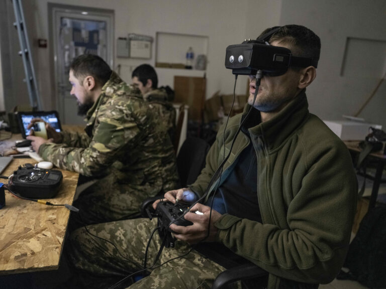 Na snímke poskytnutej tlačovou službou 93. ukrajinskej samostatnej mechanizovanej brigády Cholodnyj Jar ukrajinskí vojaci ovládajú FPV dron z krytu v Pokrovsku, mieste ťažkých bojov s ruskými jednotkami, v Doneckej oblasti na Ukrajine vo štvrtok 13. marca 2025. Foto: Iryna Rybakova/Ukraine's 93rd Mechanized Brigade via AP