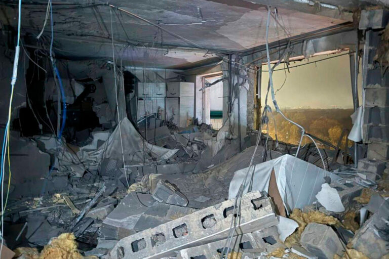 pohľad na byt v poškodenom viacposchodovom bytovom dome, ktorý v piatok 24. októbra 2025 zasiahol ukrajinský dron v Krasnogorsku neďaleko Moskvy v Rusku. Foto: Moscow Region Governor Andrei Vorobyev official telegram channel via AP