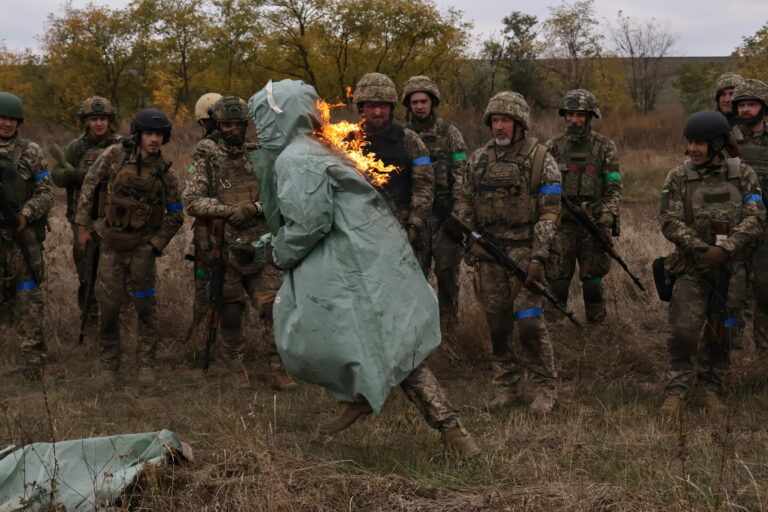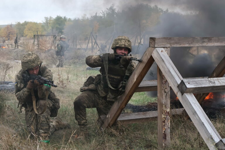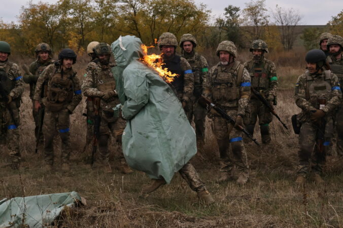 Na tejto fotografii, ktorú poskytla tlačová služba 65. mechanizovanej brigády Ukrajiny, sa nováčikovia zúčastňujú cvičenia na výcvikovom priestranstve v regióne Záporožie na Ukrajine v sobotu 11. októbra 2025. Foto: Andriy Andriyenko/Ukraine's 65th Mechanized Brigade via AP