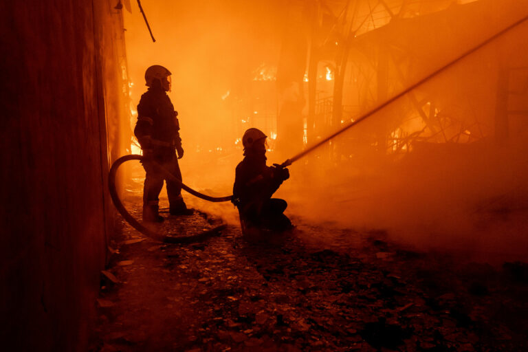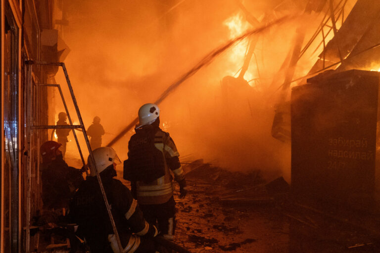 Na tejto fotografii, ktorú poskytla ukrajinská záchranná služba, hasiči hasia požiar po ruskom útoku v Odese na Ukrajine vo štvrtok 9. októbra 2025. Foto: Ukrainian Emergency Service via AP