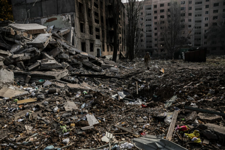 Polícia a hasiči kontrolujú škody po tom, čo ruské drony zasiahli mestskú materskú školu počas leteckého útoku v Charkove na Ukrajine v stredu 22. októbra 2025. Foto: SITA/AP