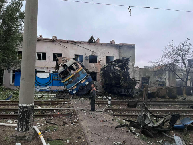 Na tejto fotografii, ktorú vo štvrtok 2. októbra 2025 poskytol Úrad podpredsedu vlády pre obnovu a rozvoj, stojí železničný pracovník pred lokomotívou vlaku zničenou ruským útokom v Odese na Ukrajine. Foto: Office of the Deputy Prime Minister for Restoration and Development via AP