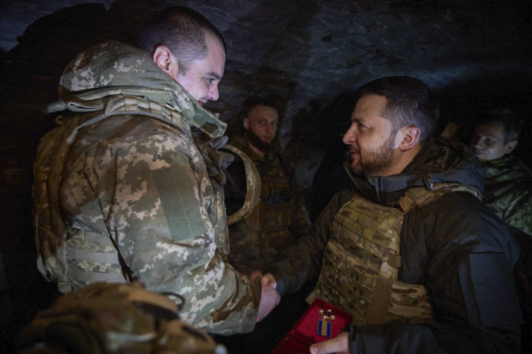 Ukrajinský prezident Volodymyr Zelenskyj navštívil vojakov na Záporoží. Foto: SITA/Ukrainian Presidential Press Office via AP