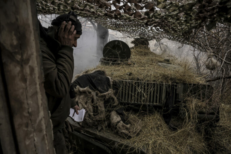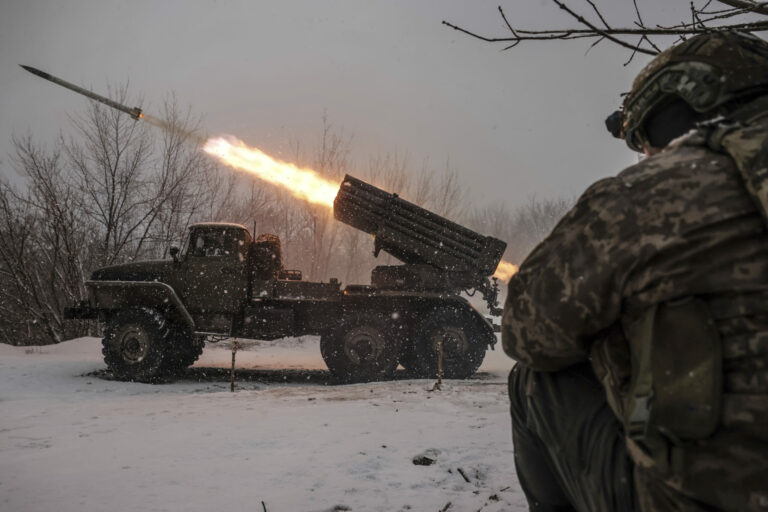 Na snímke poskytnutej tlačovou službou 24. ukrajinskej mechanizovanej brigády ukrajinskí vojaci strieľajú z tanku MRLS BM-21 „Grad“ na pozície ruskej armády pri Chasiv Jare v Doneckej oblasti na Ukrajine v sobotu 15. februára 2025. Foto: Oleg Petrasiuk/Ukraine's 24th Mechanised Brigade via AP