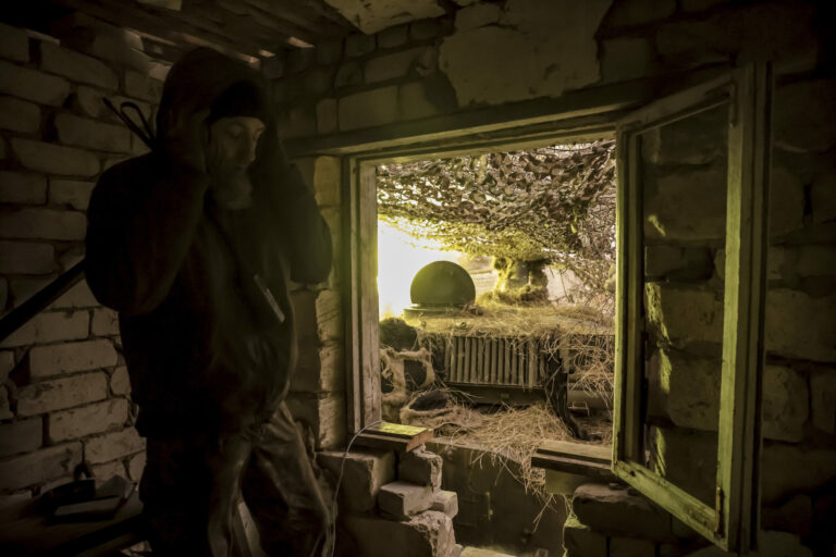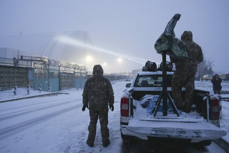 Ukrajinský vojak stojí na vozidle s protilietadlovým delom po útoku dronu v bývalej jadrovej elektrárni Černobyľ na Ukrajine v piatok 14. februára 2025. Foto: SITA/AP