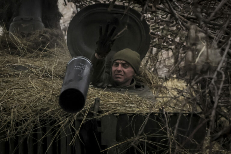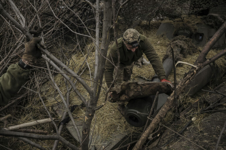 Na snímke z tlačovej služby 24. ukrajinskej mechanizovanej brigády vojak sa pripravuje na streľbu z húfnice na ruské pozície na frontovej línii pri Chasiv Jar v Doneckej oblasti na Ukrajine v piatok 7. februára 2025. Foto: Oleg Petrasiuk/Ukraine's 24th Mechanized Brigade via AP, File
