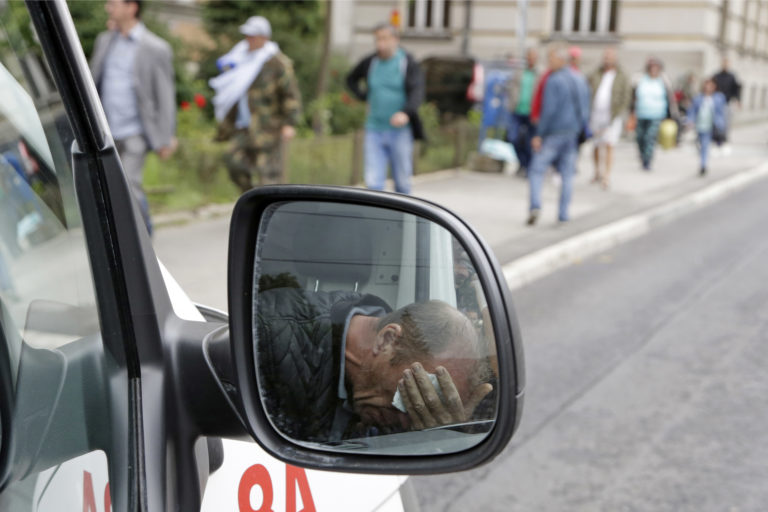 Vojnoví veteráni na proteste v hlavnom meste Sarajevo zasiahnutí slzným sprejom, 5. septembra 2018 Foto: SITA/AP