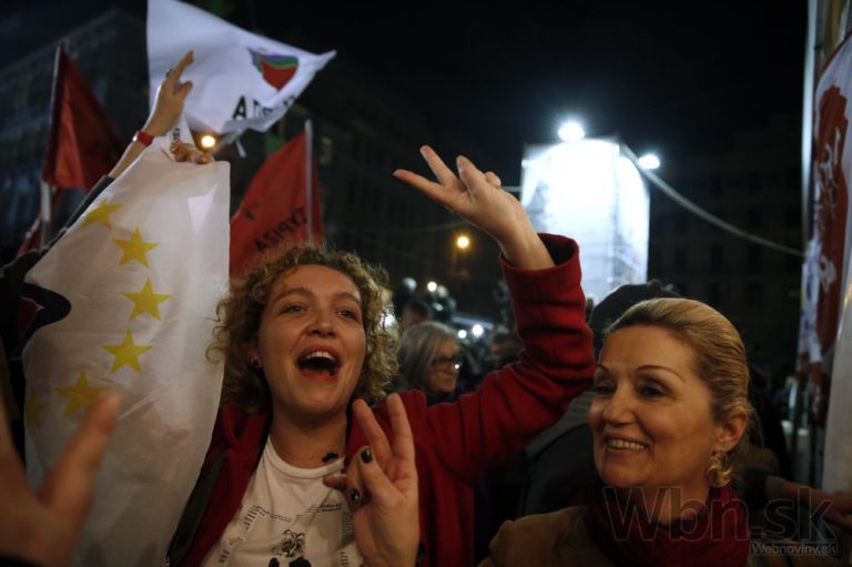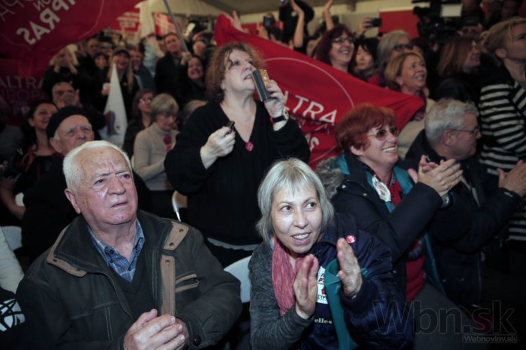 Radosť ľudí po zverejnení prvých priebežných výsledkov v parlamentných voľbách, v ktorých zvíťazila radikálna strana SYRIZA. Foto: SITA/AP