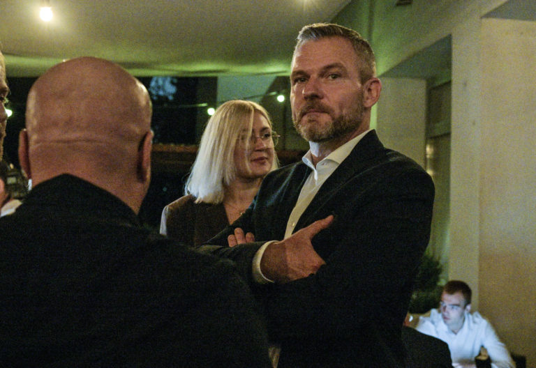 Predseda strany HLAS - sociálna demokracia Peter Pellegrini (v popredí) počas volebnej noci strany HLAS - sociálna demokracia (HLAS-SD) po ukončení predčasných volieb do Národnej rady SR 2023. Bratislava, 1. október 2023. Foto: SITA/Milan Illík