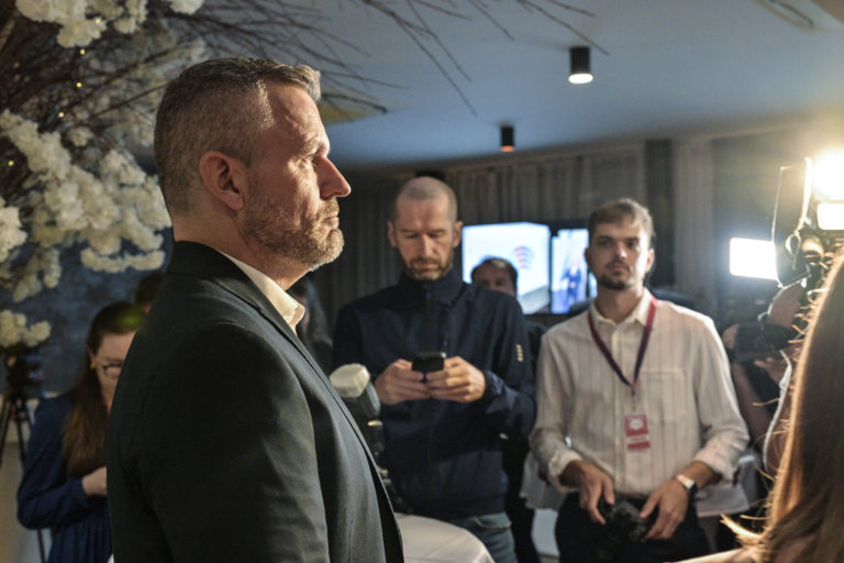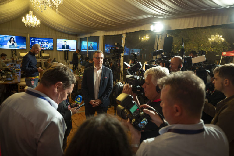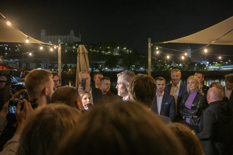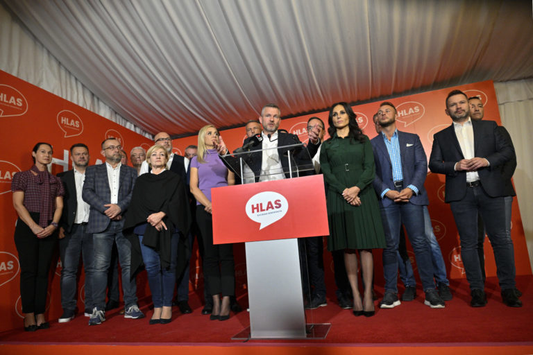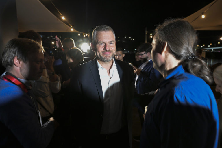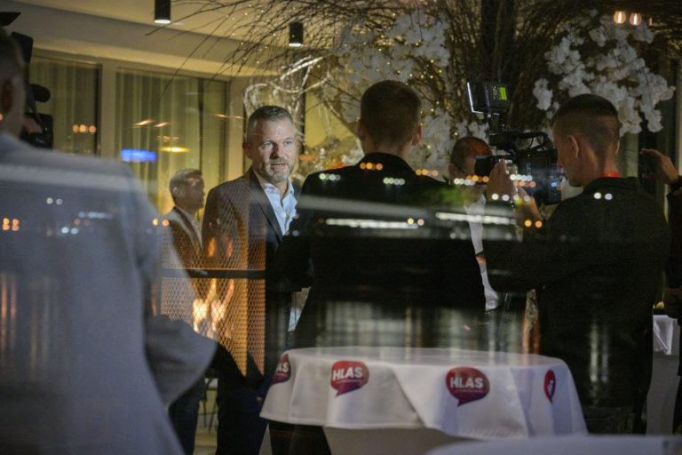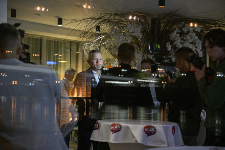Predseda strany HLAS-SD Peter Pellegrini počas volebnej noci strany HLAS - sociálna demokracia (HLAS-SD) po ukončení predčasných volieb do Národnej rady SR 2023. Bratislava, 1. október 2023. Foto: SITA/Milan Illík