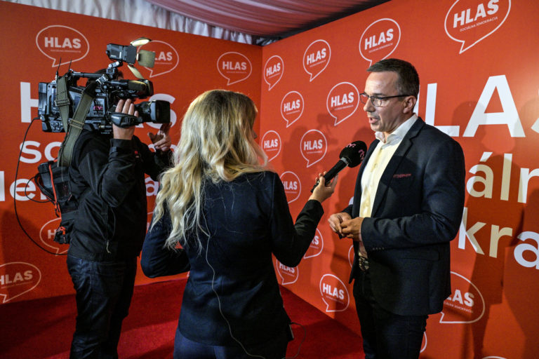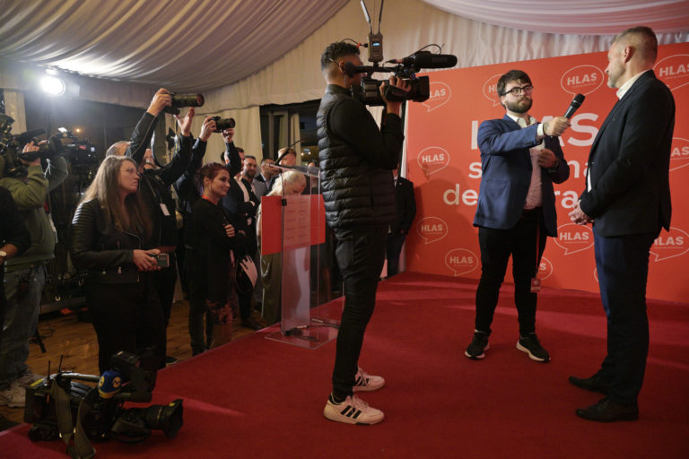 Atmosféra počas volebnej noci strany HLAS - sociálna demokracia (HLAS-SD) po ukončení predčasných volieb do Národnej rady SR 2023. Bratislava, 1. október 2023. Foto: SITA/Milan Illík