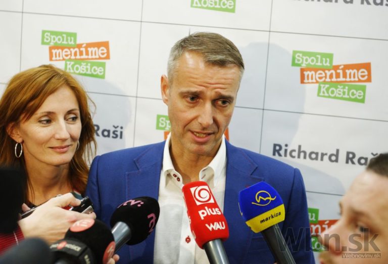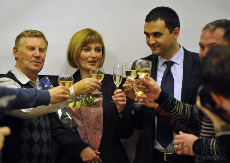 Víťaz volieb na post primátora Košíc Richard Raši (uprostred) s manželkou (vľavo) počas komunálnych volieb 2014. Košice, 15. november 2014. Foto: SITA/Tibor Zmak