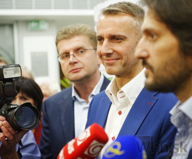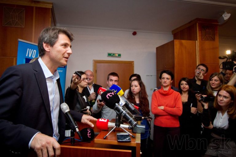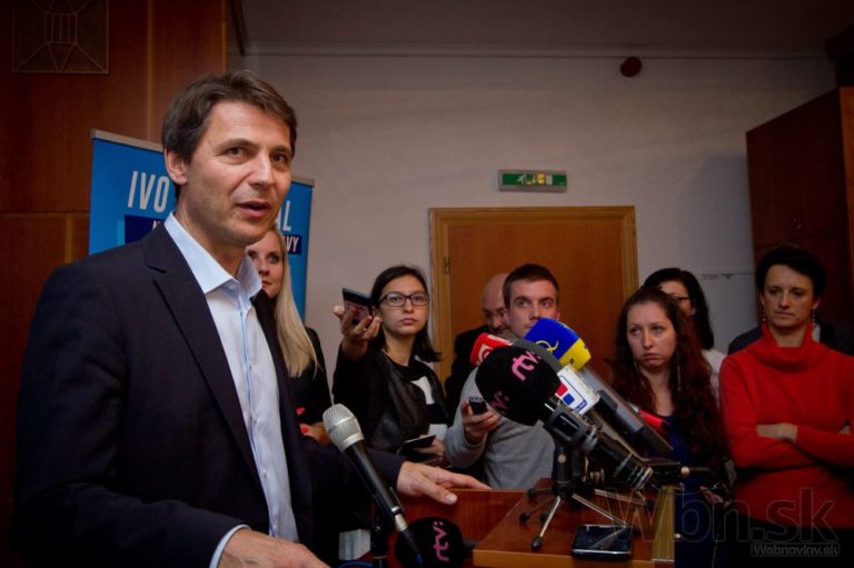 Kandidát na primátora Bratislavy Ivo Nesrovnal (uprostred) počas brífingu po ohlásení predbežných výsledkov komunálnych volieb 2014. Bratislava, 16. november 2014. Foto: SITA/Ľudovít Vaniher