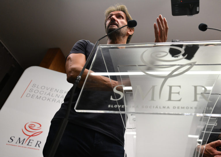 Predseda strany SMER-SSD Robert Fico počas volebnej noci v centrále strany SMER - slovenská sociálna demokracia (SMER-SSD) v rámci predčasných volieb do Národnej rady SR 2023. Bratislava, 30. september 2023. Foto: SITA/Martin Medňanský