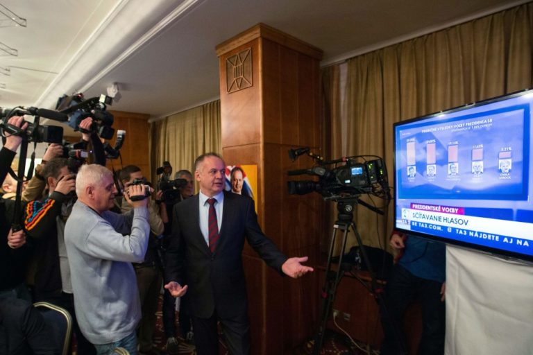 Kandidát na prezidenta SR Andrej Kiska na tlačovej besede krátko po vyhlásení neoficiálnych výsledkov prvého kola volieb. Foto: SITA/Jozef Jakubčo