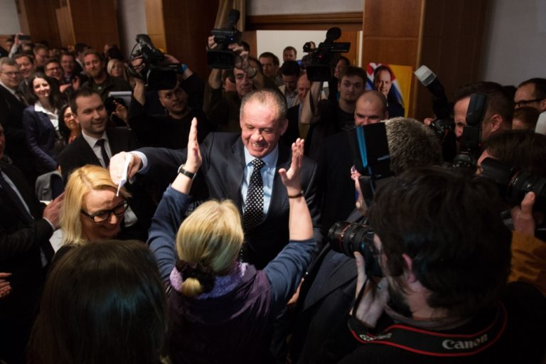 Volebná noc u Andreja Kisku, prišiel aj neúspešný kandidát na prezidenta Radoslav Prochádzka. Foto: SITA/Jozef Jakubčo