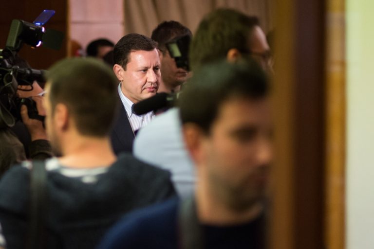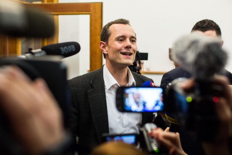 Do volebného štábu Andreja Kisku dorazil aj Daniel Lipšic, predseda strany NOVA. Foto: SITA/Jozef Jakubčo