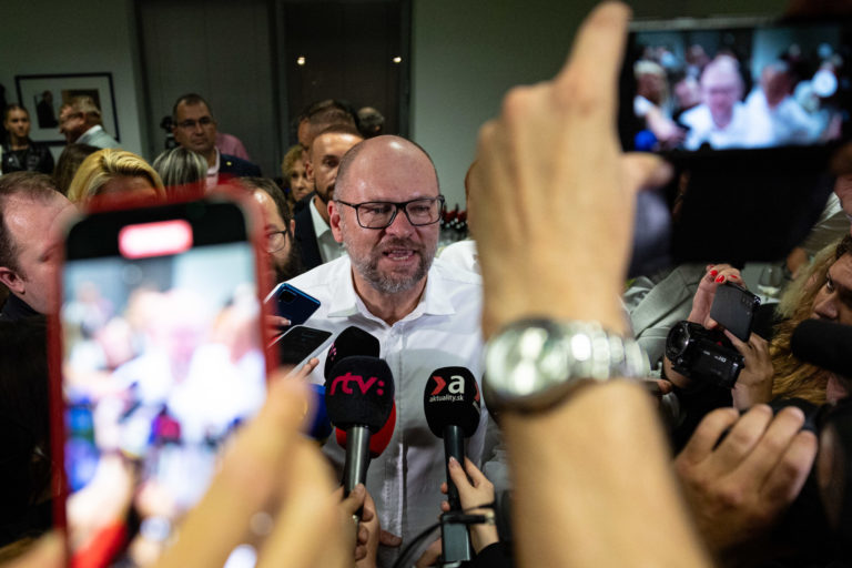 Predseda SaS Richard Sulík počas volebnej noci v centrále strany Sloboda a Solidarita (SaS) v rámci predčasných volieb do Národnej rady SR 2023. Bratislava, 30. september 2023. Foto: SITA/Jana Birošová