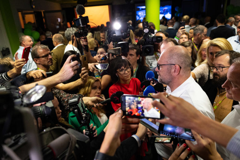 Podpredseda SaS Branislav Gröhling počas volebnej noci v centrále strany Sloboda a Solidarita (SaS) v rámci predčasných volieb do Národnej rady SR 2023. Bratislava, 30. september 2023. Foto: SITA/Jana Birošová