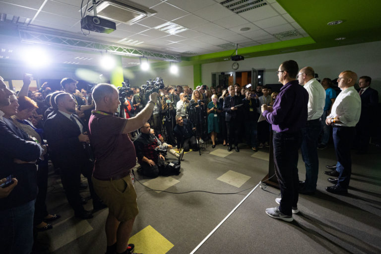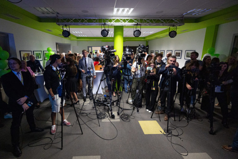 Atmosféra počas volebnej noci v centrále strany Sloboda a Solidarita (SaS) v rámci predčasných volieb do Národnej rady SR 2023. Bratislava, 1. október 2023. Foto: SITA/Jana Birošová