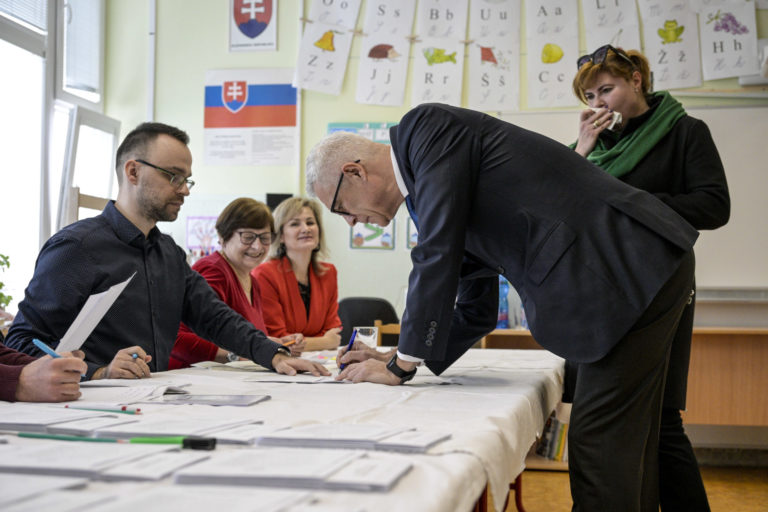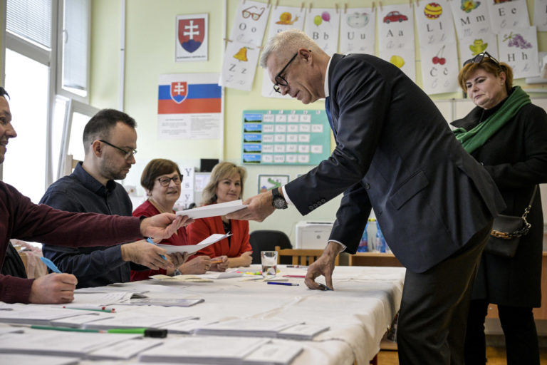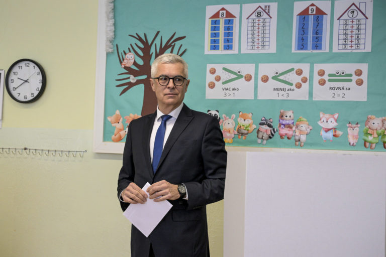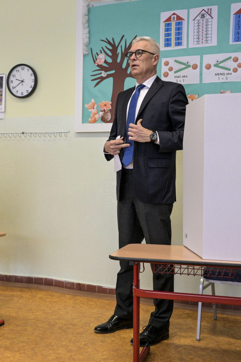 Občiansky kandidát na prezidenta SR Ivan Korčok počas volebného aktu v rámci 1. kola prezidentských volieb 2024. Senec, 23. marec 2024. Foto: SITA/Milan Illík.