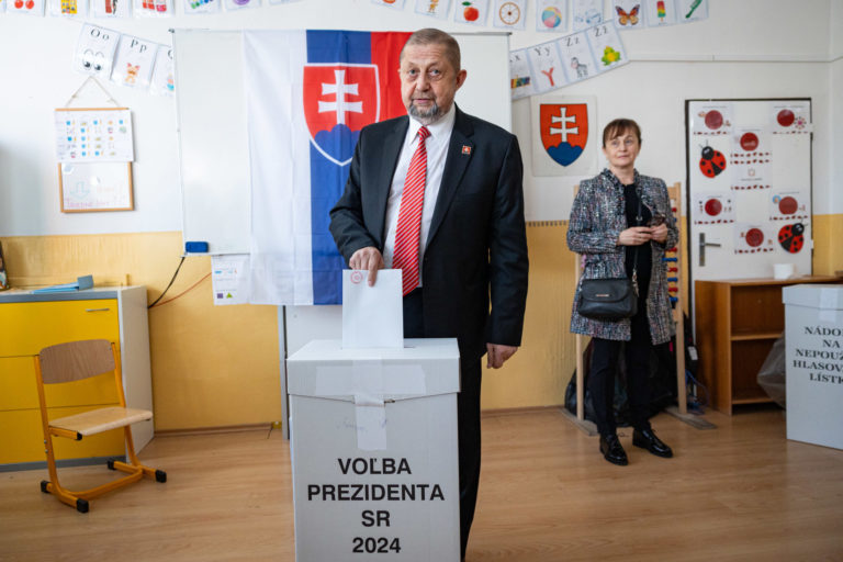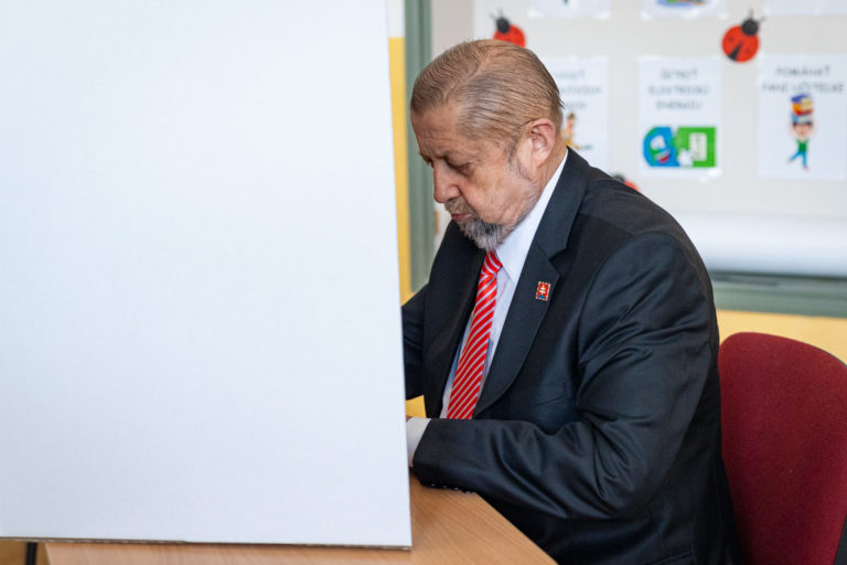 Občiansky kandidát na prezidenta SR Štefan Harabin počas volebného aktu v rámci 1. kola prezidentských volieb 2024. Bratislava, 23. marec 2024. Foto: SITA/Jana Birošová