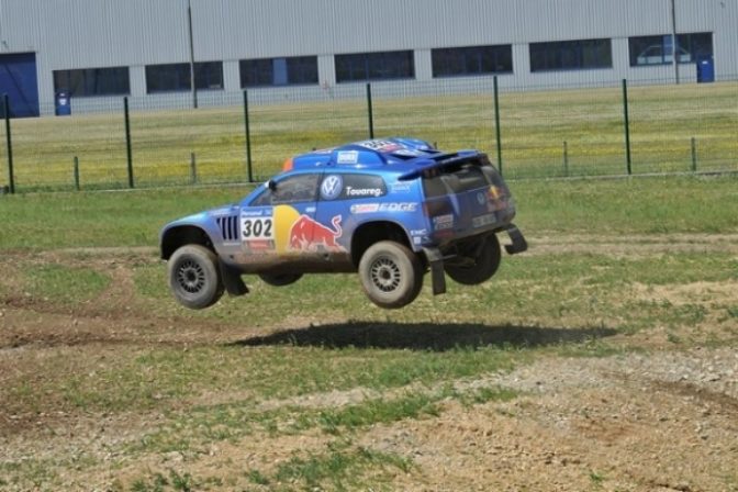 Hlavný dizajnér koncernu Volkswagen, Walter de Silva, opisuje krivky po bokoch nového Touaregu. Večer moderoval Thomas Gottschalk. Foto: Ondrej Rabatin