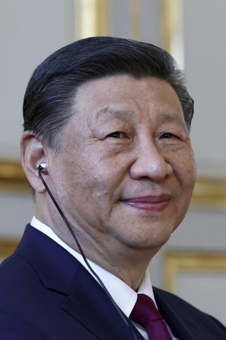 Čínsky prezident Si Ťin-pching sa zúčastňuje na trojstrannom stretnutí s francúzskym prezidentom Emmanuelom Macronom a predsedníčkou Európskej komisie Ursulou von der Leyenovou v Elyzejskom paláci v rámci dvojdňovej štátnej návštevy čínskeho prezidenta vo Francúzsku v pondelok 6. mája 2024 v Paríži. Foto: Gonzalo Fuentes/Pool via AP