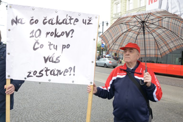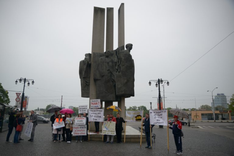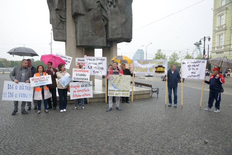 Pred budovou ministerstva životného prostredia (MŽP) v stredu 3. apríla protestovali obyvatelia bratislavskej mestskej časti Vrakuňa pre stále neriešený problém toxickej skládky z bývalých závodov Juraja Dimitrova.