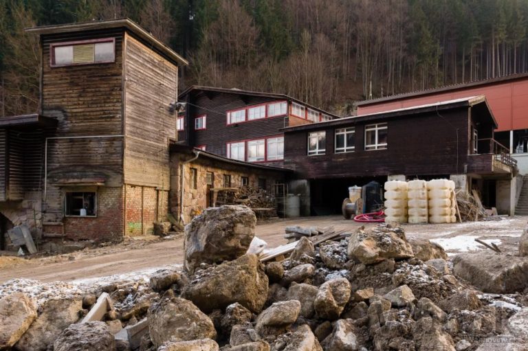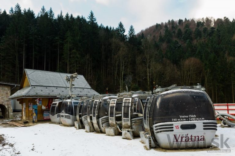 Kabínky lanovky, ktoré boli zničené povodňou a zosuvom v údolnej stanici lanovky vo Vrátnej doline v júli 2014. Terchová, 11. december 2014. Foto: SITA/Milo Fabian
