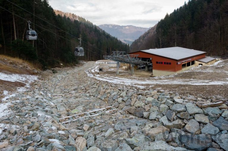 Chata Vrátna a údolná stanica lanovky, ktoré boli v lete postihnuté povodňou a zosuvom. Terchová, 11. december 2014. Foto: SITA/Milo Fabian
