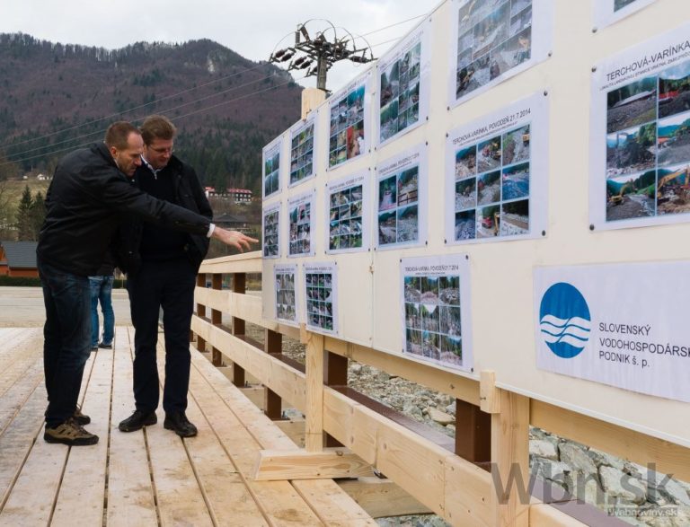 Minister životného prostredia SR Peter Žiga (vpravo) si prezerá fotodokumentáciu Vrátnej doliny po júlovej povodni a zosuve.Terchová, 11. december 2014. Foto: SITA/Milo Fabian