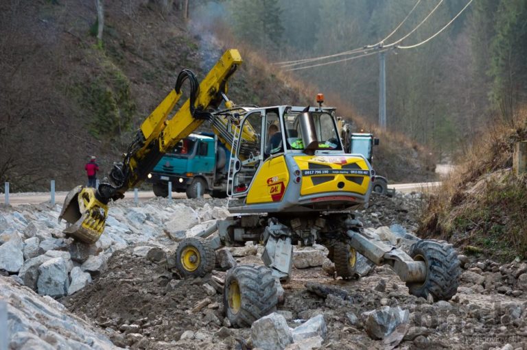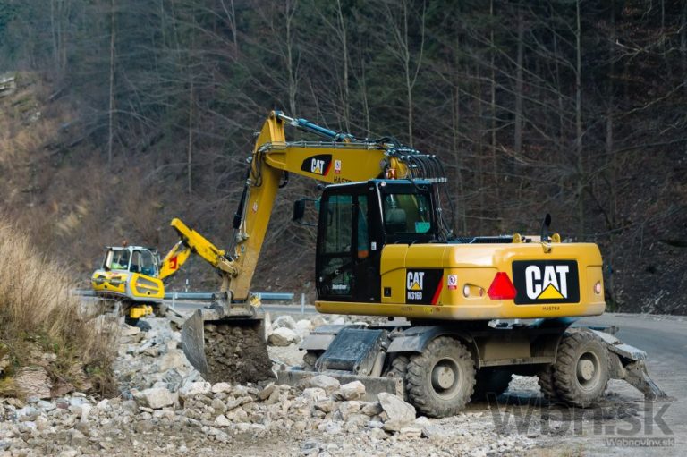 V hornej časti Vrátnej doliny stále prebiehajú práce na úprave koryta rieky Varínka. Terchová, 11. december 2014. Foto: SITA/Milo Fabian
