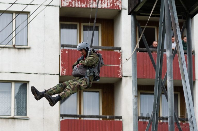 Adept na službu v 5. pluku špeciálneho určenia počas ukážky zoskoku v rámci výberu adeptov pre službu v 5. pluku. Žilina, 5. jún 2014.