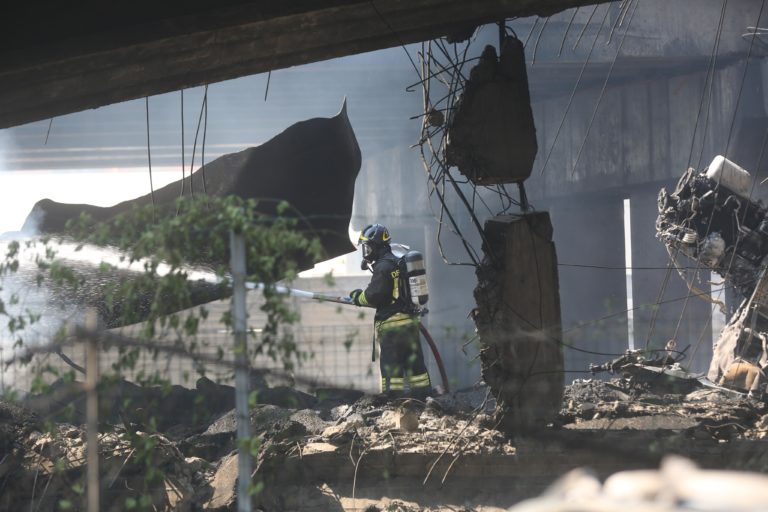 Mnohí zo zranených majú ťažké popáleniny. Výbuch nastal po hromadnej havárii, ktorej súčasťou bolo aj nákladné auto prevážajúce horľaviny. Foto: Vigili Del Fuoco via AP.