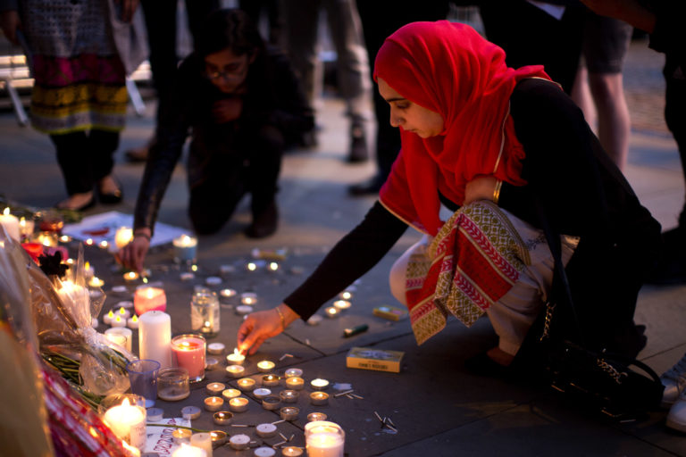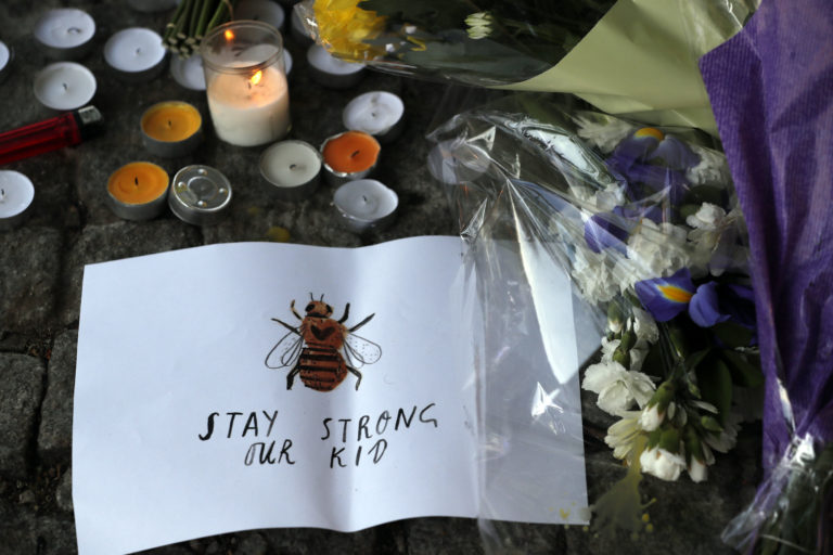 Zapálené sviečky na počesť obetí útoku samovraždedného atentátnika na koncerte Ariany Grande v Manchestri. Foto: SITA/AP.