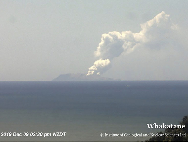 Výbuch sopky White Island na Novom Zélande, 9. december 2019. Foto: SITA/AP
