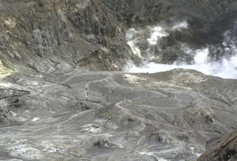 Turisti na ceste v blízkosti krátera sopky, 9. december 2019. Foto: SITA/GNS Science via AP
