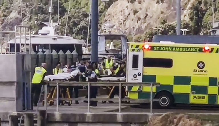 Záchranári ošetrujú zranených po výbuchu sopky White Island na Novom Zélande, 9. december 2019. Foto: SITA/AP