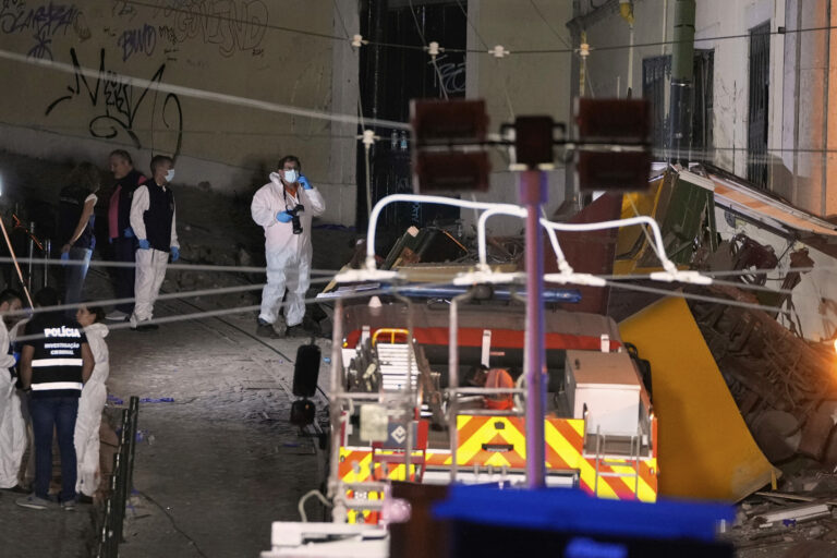 Záchranné tímy pracujú na mieste vykoľajenia električky v Lisabone, Portugalsko, streda, 3. septembra 2025. Foto: SITA/AP