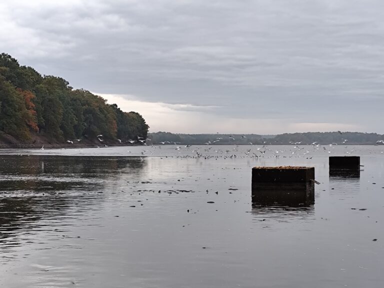 Dav turistov a miestnych obyvateľov sleduje výlov rybníka Rožmberk na Třeboňsku. Foto: SITA/Milota Mezeiová