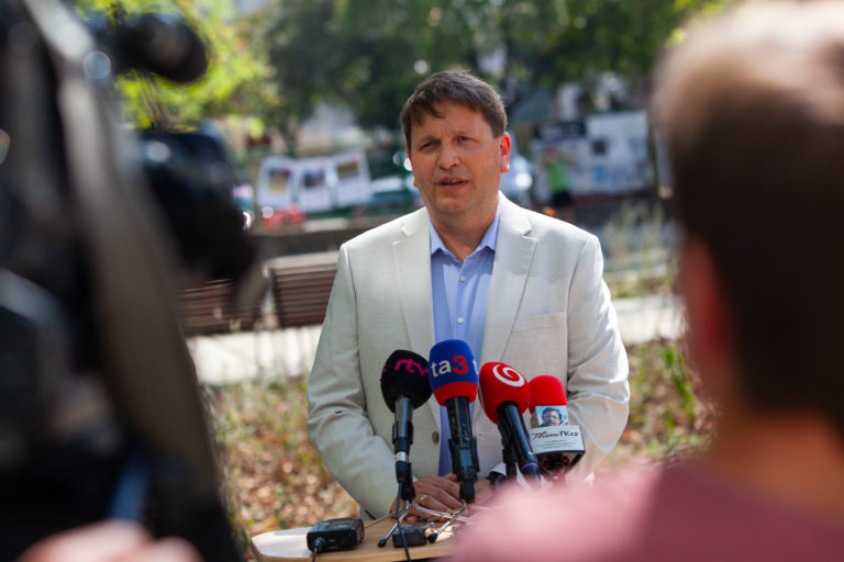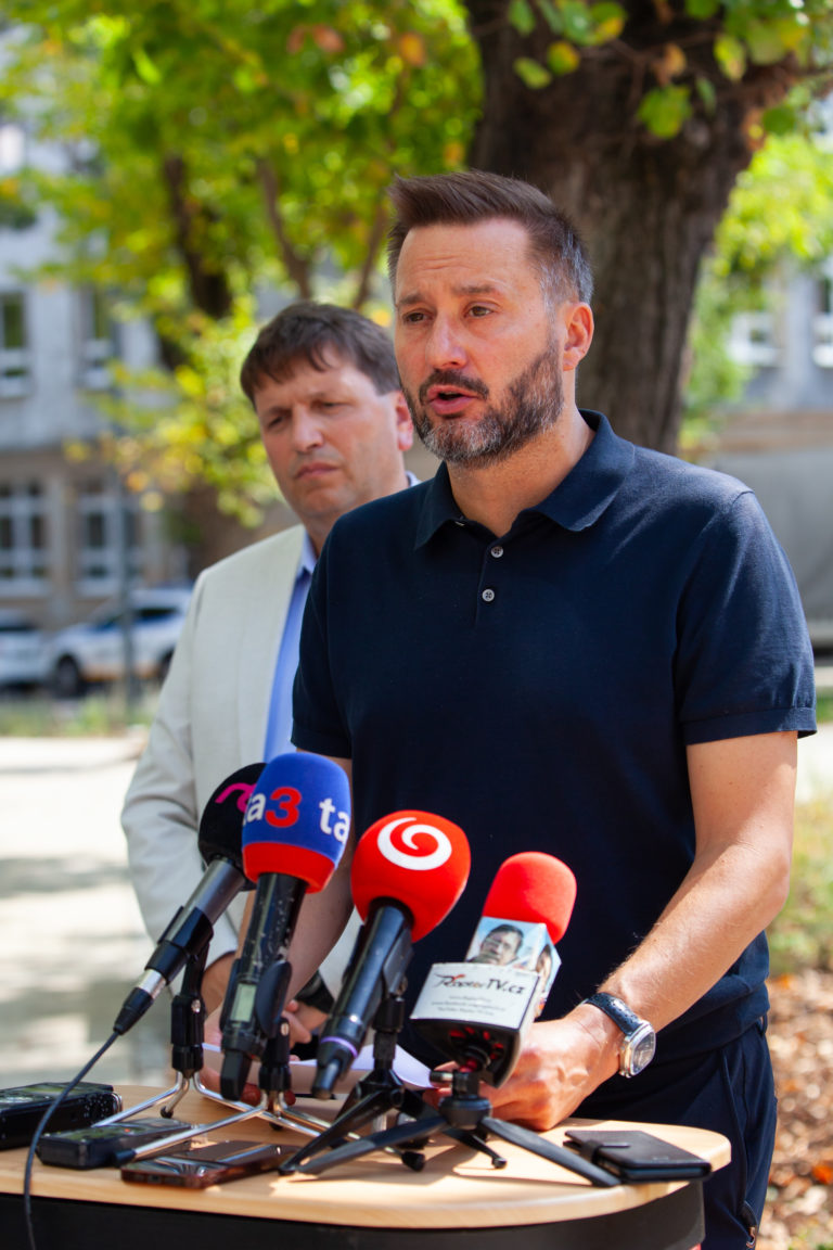 Starosta mestskej časti Staré mesto Matej Vagač počas odovzdávania nového zrevitalizovaného verejného priestoru pri Základnej škole na Vazovovej ulici v Bratislave. Bratislava, 4. september 2024. Foto: SITA/Tomáš Bokor