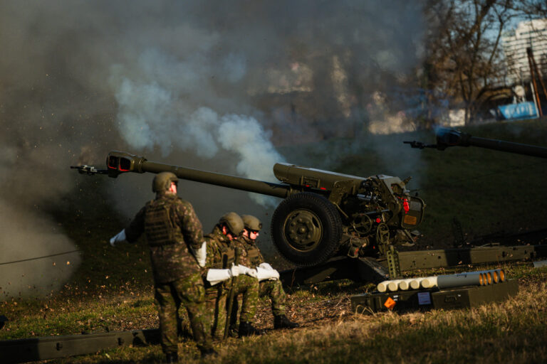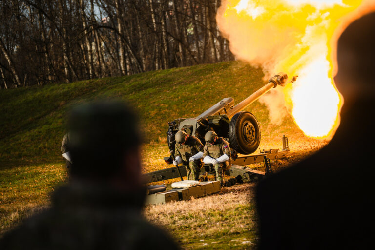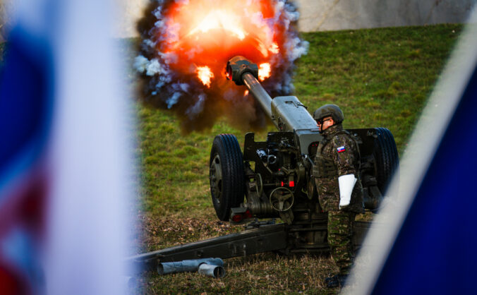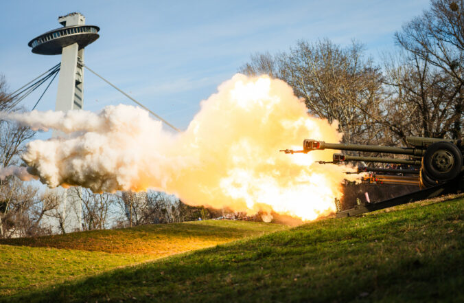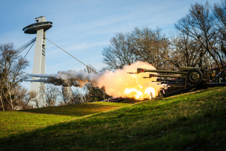 Atmosféra počas vypálenia 21 novoročných sálv delostrelcami ozbrojených síl na počesť štátneho sviatku Dňa vzniku Slovenskej republiky na nábreží Dunaja v Bratislave. Bratislava, 1. január 2026. Foto: SITA/Kancelária prezidenta